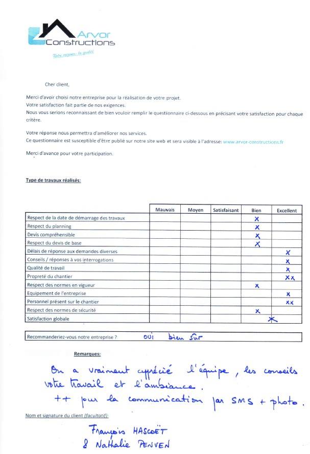 La SARL Arvor Constructions est une société familiale morbihannaise située à Plescop près de Vannes ( Morbihan 5.) Constituée de compagnons qualifiés, notre entreprise est reconnue pour le sérieux de ses travaux ainsi que pour la qualité de construction de ses maisons.